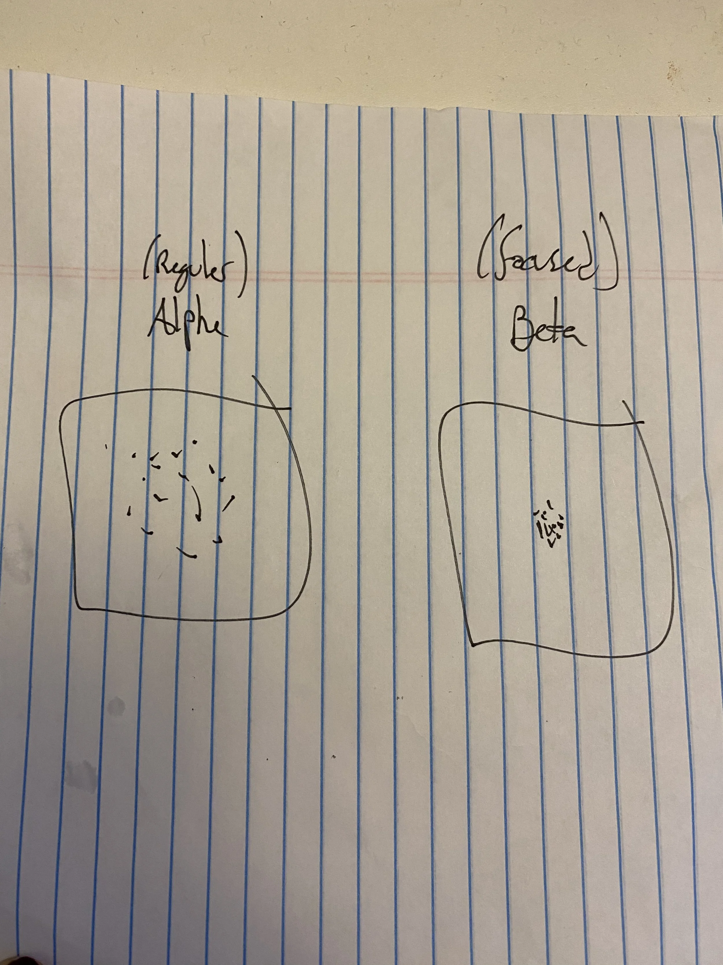 We discussed the concentration visuals of focused and unfocused. Sam has a neuroscience background so gave Tianxu and I a brief overview of the different EEG states. We sketched out two states: alpha and beta or “unfocused” and “focused”.